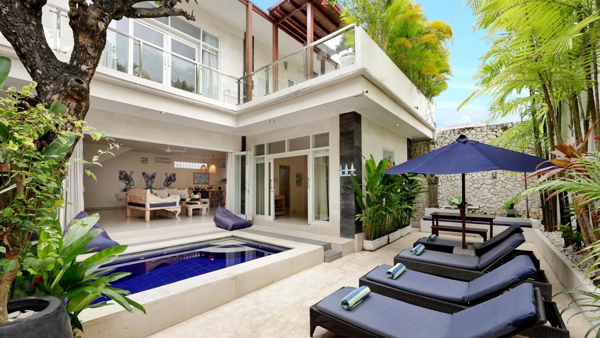 Die 3-Zimmer- Alba befindet sich im Stadtteil Seminyak - Zentrum und verfügt über eine sonnige Terrasse mit Blick auf den Pool.